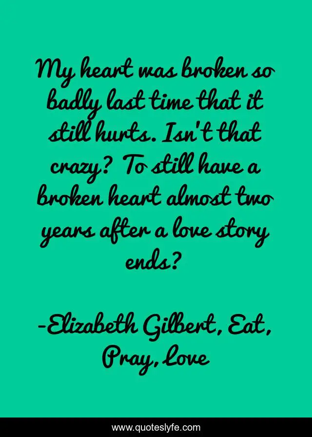"Elizabeth Gilbert, Eat, Pray, Love Quotes." Quoteslyfe.com, 2025. Sun. 07 Dec. 2025. <https://www.quoteslyfe.com/quote/My-heart-was-broken-so-badly-last-123783>.