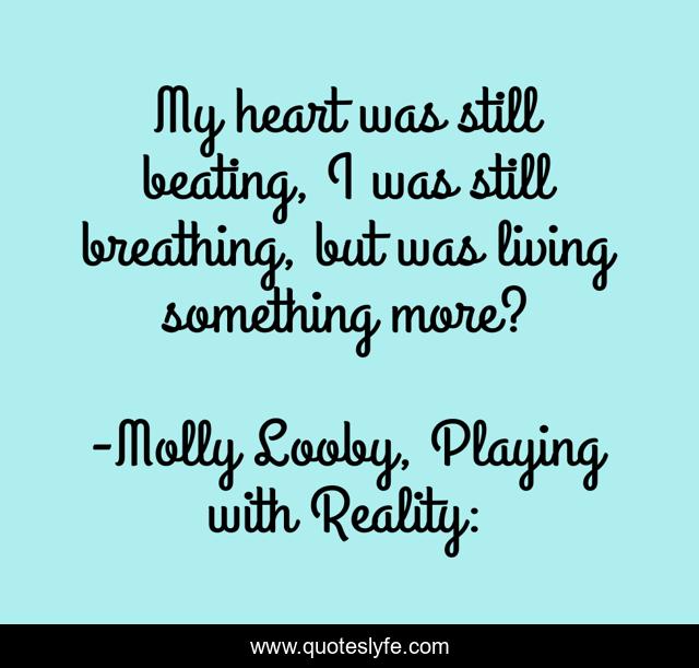 This page presents the quote "My heart was still beating, I was still breathing, but was living something more?". Author of this quote is Molly Looby, Playing with Reality:. This quote is about living, life, pwr, felix, felix-hesper, playing-with-reality,.