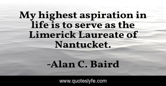 This page presents the quote "My highest aspiration in life is to serve as the Limerick Laureate of Nantucket.". Author of this quote is Alan C. Baird. This quote is about poet, limerick, laureate, nantucket, poetry,.