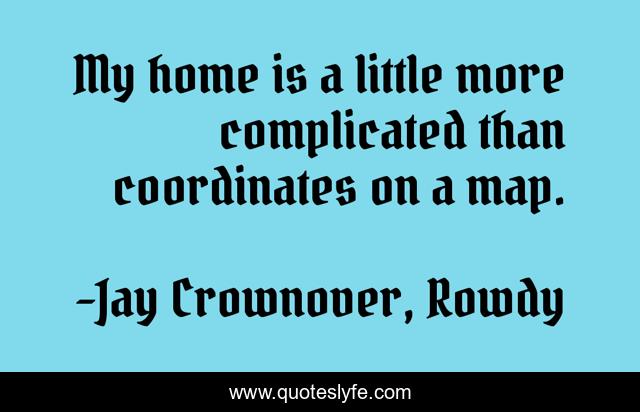 This page presents the quote "My home is a little more complicated than coordinates on a map.". Author of this quote is Jay Crownover, Rowdy. .