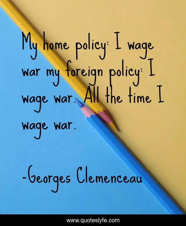 "Georges Clemenceau Quotes." Quoteslyfe.com, 2025. Sun. 07 Dec. 2025. <https://www.quoteslyfe.com/quote/My-home-policy-I-wage-war-my-285654>.