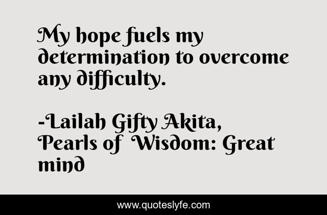 "Lailah Gifty Akita, Pearls of Wisdom: Great mind Quotes." Quoteslyfe.com, 2025. Mon. 08 Dec. 2025. <https://www.quoteslyfe.com/quote/My-hope-fuels-my-determination-to-overcome-151753>.