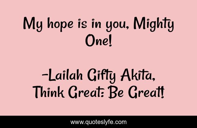 "Lailah Gifty Akita, Think Great: Be Great! Quotes." Quoteslyfe.com, 2025. Sun. 07 Dec. 2025. <https://www.quoteslyfe.com/quote/My-hope-is-in-you-Mighty-One-172885>.