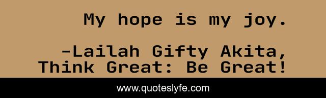 "Lailah Gifty Akita, Think Great: Be Great! Quotes." Quoteslyfe.com, 2025. Sat. 06 Dec. 2025. <https://www.quoteslyfe.com/quote/My-hope-is-my-joy-85270>.