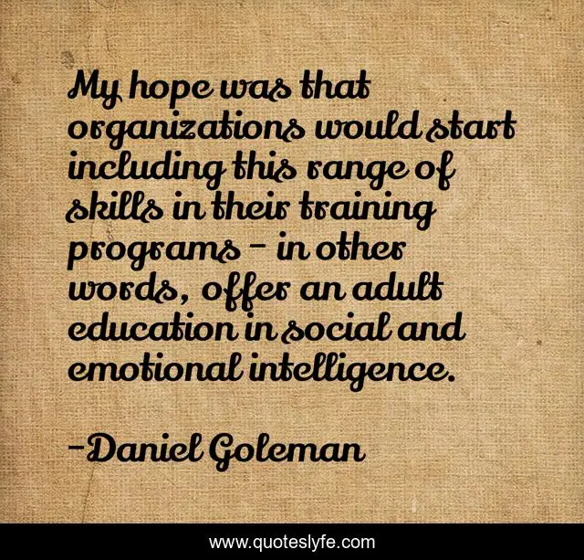 This page presents the quote "My hope was that organizations would start including this range of skills in their training programs - in other words, offer an adult education in social and emotional intelligence.". Author of this quote is Daniel Goleman. This quote is about training, education, words,.