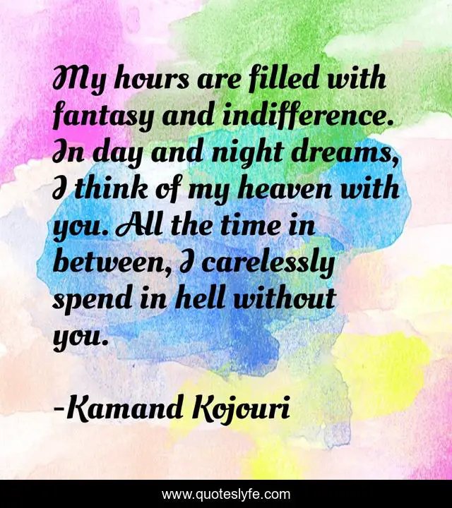 "Kamand Kojouri Quotes." Quoteslyfe.com, 2025. Sat. 06 Dec. 2025. <https://www.quoteslyfe.com/quote/My-hours-are-filled-with-fantasy-and-71665>.
