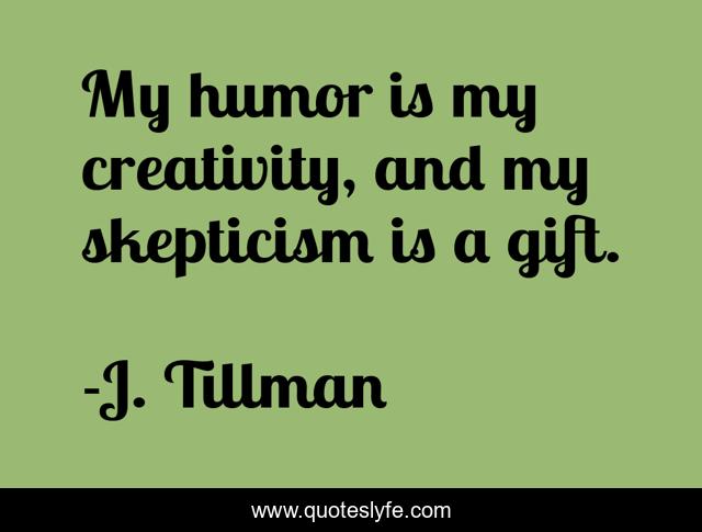 This page presents the quote "My humor is my creativity, and my skepticism is a gift.". Author of this quote is J. Tillman. This quote is about skepticism, creativity, gift,.