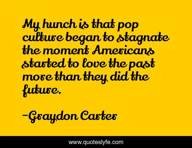 This page presents the quote "My hunch is that pop culture began to stagnate the moment Americans started to love the past more than they did the future.". Author of this quote is Graydon Carter. This quote is about past, culture, love, affection,.