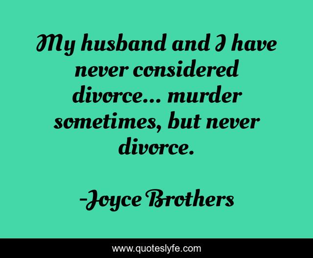 This page presents the quote "My husband and I have never considered divorce... murder sometimes, but never divorce.". Author of this quote is Joyce Brothers. This quote is about divorce, marriage,.