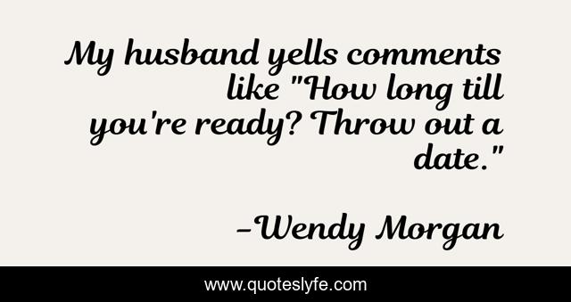 This page presents the quote "My husband yells comments like "How long till you're ready? Throw out a date."". Author of this quote is Wendy Morgan. This quote is about love, marriage, affection,.