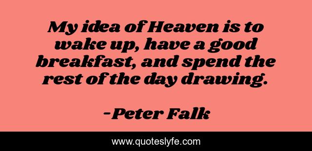 This page presents the quote "My idea of Heaven is to wake up, have a good breakfast, and spend the rest of the day drawing.". Author of this quote is Peter Falk. This quote is about breakfast, day, drawing,.
