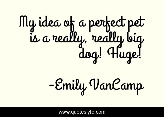 This page presents the quote "My idea of a perfect pet is a really, really big dog! Huge!". Author of this quote is Emily VanCamp. This quote is about perfect, dog, idea,.