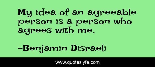 This page presents the quote "My idea of an agreeable person is a person who agrees with me.". Author of this quote is Benjamin Disraeli. This quote is about quips, comments,.