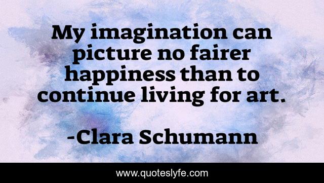 This page presents the quote "My imagination can picture no fairer happiness than to continue living for art.". Author of this quote is Clara Schumann. This quote is about imagination, art, picture,.