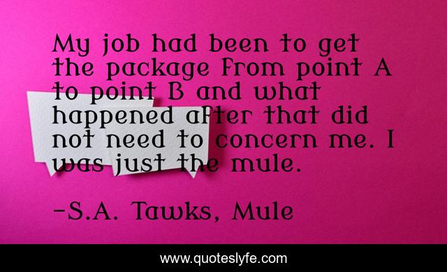 "S.A. Tawks, Mule Quotes." Quoteslyfe.com, 2025. Mon. 08 Dec. 2025. <https://www.quoteslyfe.com/quote/My-job-had-been-to-get-the-228786>.
