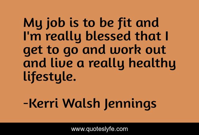 This page presents the quote "My job is to be fit and I'm really blessed that I get to go and work out and live a really healthy lifestyle.". Author of this quote is Kerri Walsh Jennings. This quote is about job, work, blessed,.