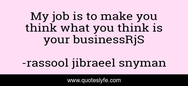"rassool jibraeel snyman Quotes." Quoteslyfe.com, 2025. Sun. 07 Dec. 2025. <https://www.quoteslyfe.com/quote/My-job-is-to-make-you-think-166928>.