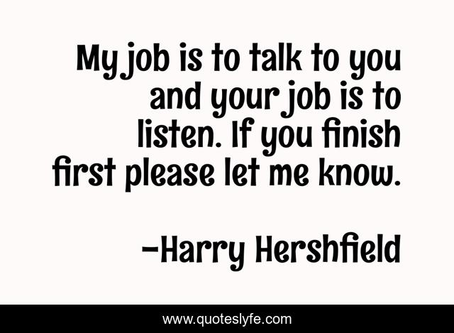 This page presents the quote "My job is to talk to you and your job is to listen. If you finish first please let me know.". Author of this quote is Harry Hershfield. This quote is about introductions, openers,.
