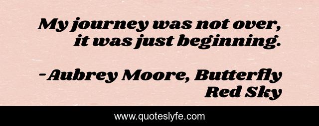 "Aubrey Moore, Butterfly Red Sky Quotes." Quoteslyfe.com, 2025. Fri. 05 Dec. 2025. <https://www.quoteslyfe.com/quote/My-journey-was-not-over-it-was-151567>.
