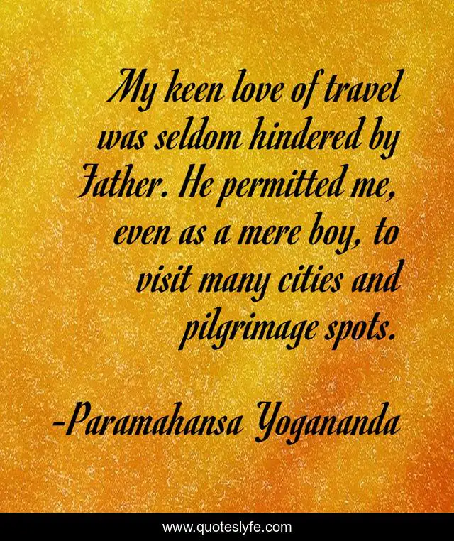 "Paramahansa Yogananda Quotes." Quoteslyfe.com, 2025. Sat. 06 Dec. 2025. <https://www.quoteslyfe.com/quote/My-keen-love-of-travel-was-seldom-311896>.