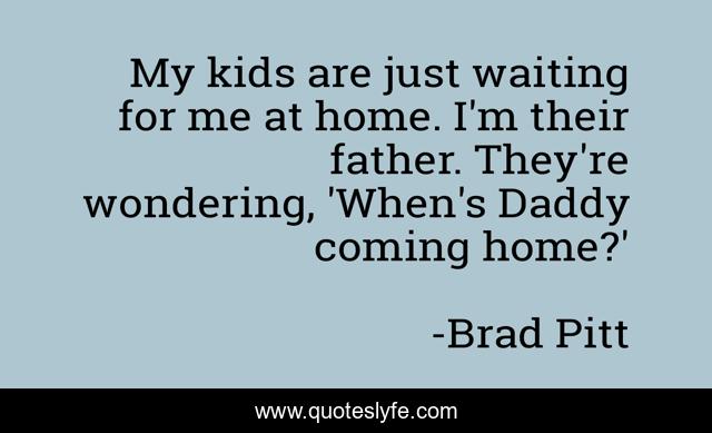 This page presents the quote "My kids are just waiting for me at home. I'm their father. They're wondering, 'When's Daddy coming home?'". Author of this quote is Brad Pitt. This quote is about me, waiting, father,.