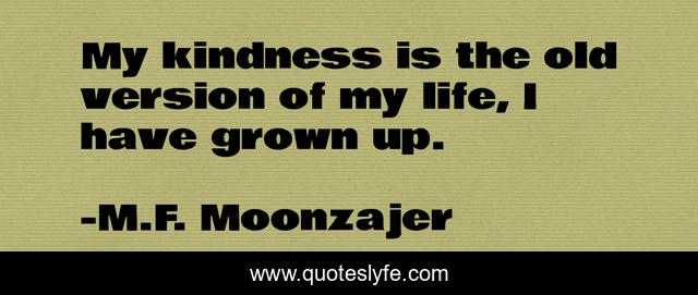 This page presents the quote "My kindness is the old version of my life, I have grown up.". Author of this quote is M.F. Moonzajer. This quote is about kindness, version,.