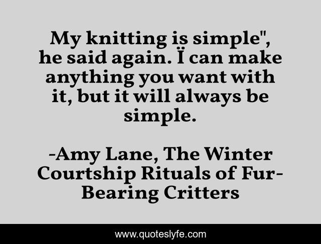 "Amy Lane, The Winter Courtship Rituals of Fur-Bearing Critters Quotes." Quoteslyfe.com, 2025. Sat. 06 Dec. 2025. <https://www.quoteslyfe.com/quote/My-knitting-is-simple-he-said-again-18413>.