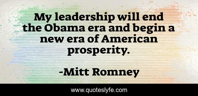 This page presents the quote "My leadership will end the Obama era and begin a new era of American prosperity.". Author of this quote is Mitt Romney. This quote is about new, american, end,.