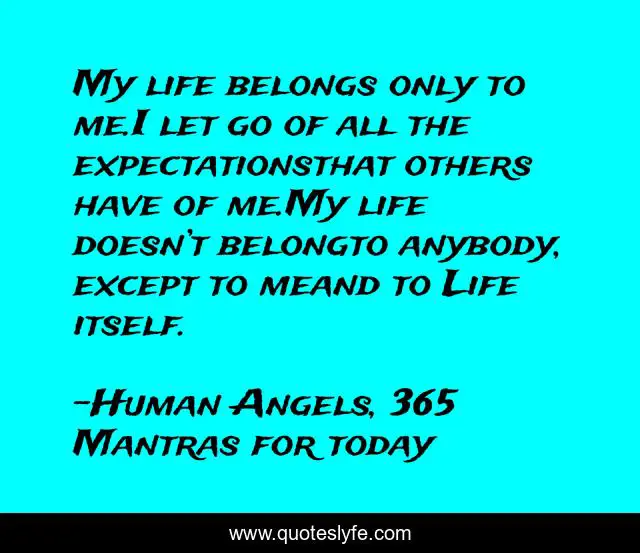 This page presents the quote "My life belongs only to me.I let go of all the expectationsthat others have of me.My life doesn’t belongto anybody, except to meand to Life itself.". Author of this quote is Human Angels, 365 Mantras for today. This quote is about mantra, affirmation, expectations,.