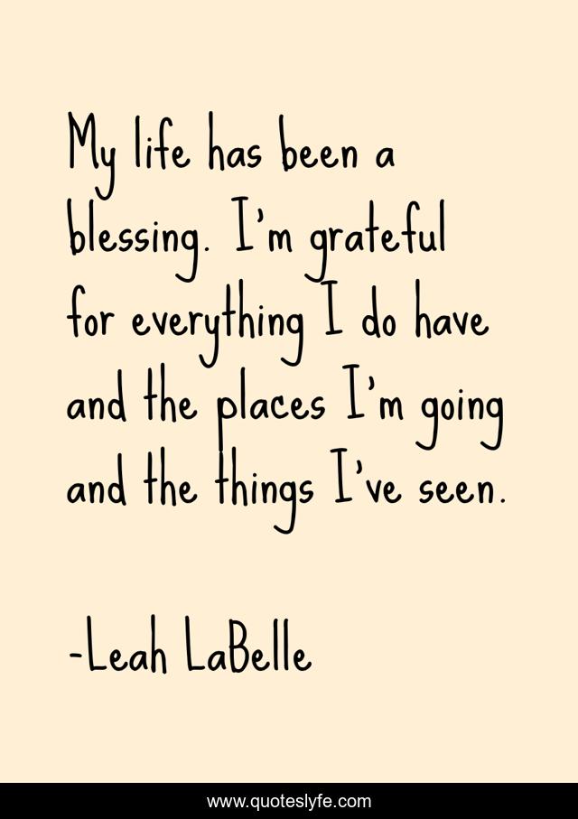 This page presents the quote "My life has been a blessing. I'm grateful for everything I do have and the places I'm going and the things I've seen.". Author of this quote is Leah LaBelle. This quote is about blessing, grateful, my life,.