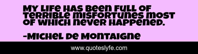 This page presents the quote "My life has been full of terrible misfortunes most of which never happened.". Author of this quote is Michel de Montaigne. .