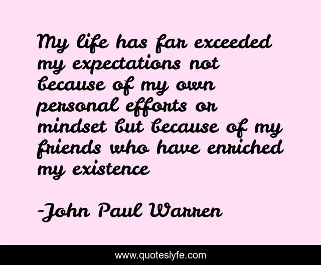 "John Paul Warren Quotes." Quoteslyfe.com, 2025. Fri. 05 Dec. 2025. <https://www.quoteslyfe.com/quote/My-life-has-far-exceeded-my-expectations-63985>.