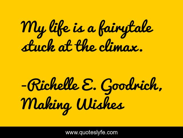 This page presents the quote "My life is a fairytale stuck at the climax.". Author of this quote is Richelle E. Goodrich, Making Wishes. This quote is about life, life-is, richelle-e-goodrich, fairytale, richelle, richelle-goodrich,.