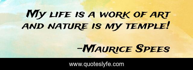 This page presents the quote "My life is a work of art and nature is my temple!". Author of this quote is Maurice Spees. This quote is about life, work, art, temple, nature,.