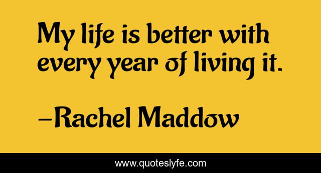 "Rachel Maddow Quotes." Quoteslyfe.com, 2025. Fri. 05 Dec. 2025. <https://www.quoteslyfe.com/quote/My-life-is-better-with-every-year-312897>.