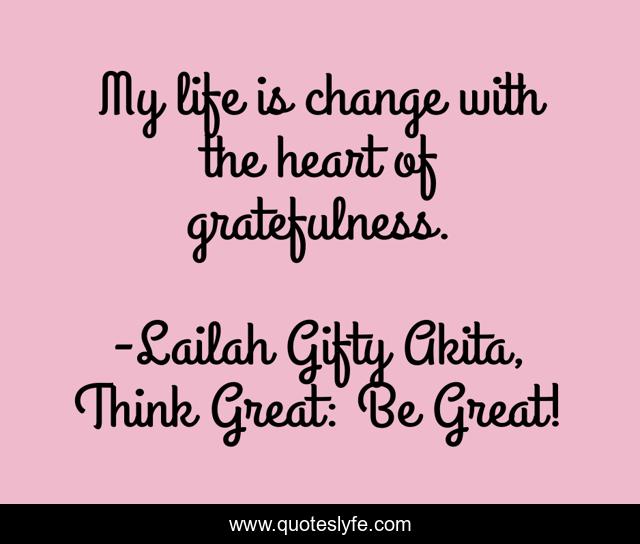 "Lailah Gifty Akita, Think Great: Be Great! Quotes." Quoteslyfe.com, 2025. Mon. 08 Dec. 2025. <https://www.quoteslyfe.com/quote/My-life-is-change-with-the-heart-105455>.