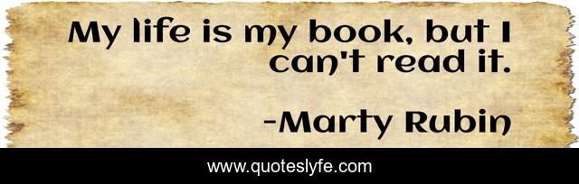 This page presents the quote "My life is my book, but I can't read it.". Author of this quote is Marty Rubin. This quote is about mystery, life, the-unknown,.