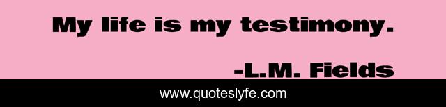 This page presents the quote "My life is my testimony.". Author of this quote is L.M. Fields. This quote is about enthusiasm, spiritual, inspirational, truth,.