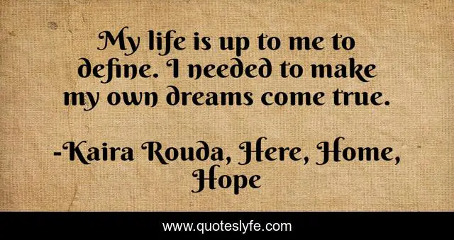 This page presents the quote "My life is up to me to define. I needed to make my own dreams come true.". Author of this quote is Kaira Rouda, Here, Home, Hope. .