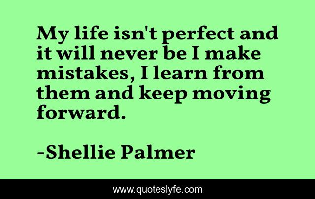 This page presents the quote "My life isn't perfect and it will never be I make mistakes, I learn from them and keep moving forward.". Author of this quote is Shellie Palmer. This quote is about living, life, life-lessons,.