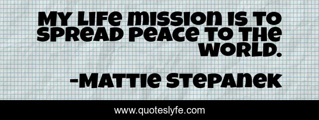 This page presents the quote "My life mission is to spread peace to the world.". Author of this quote is Mattie Stepanek. This quote is about world, life, my life,.