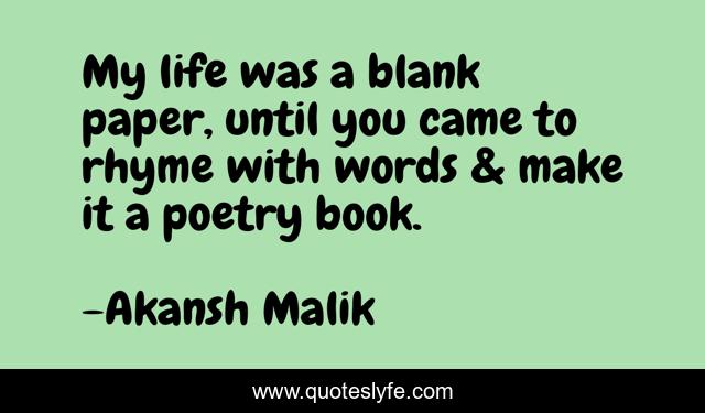 This page presents the quote "My life was a blank paper, until you came to rhyme with words & make it a poetry book. ❤ ❤". Author of this quote is Akansh Malik. This quote is about poem, book, love, poetry, affection,.