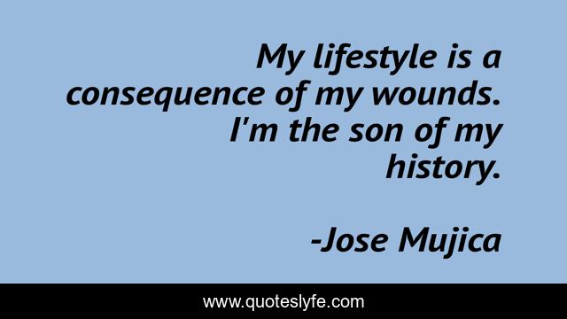 This page presents the quote "My lifestyle is a consequence of my wounds. I'm the son of my history.". Author of this quote is Jose Mujica. This quote is about lifestyle, wounds, son,.
