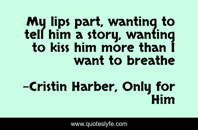 This page presents the quote "My lips part, wanting to tell him a story, wanting to kiss him more than I want to breathe". Author of this quote is Cristin Harber, Only for Him. This quote is about romance, new-adult-contemporary-romance, swoon, swoonworthy, sweet,.