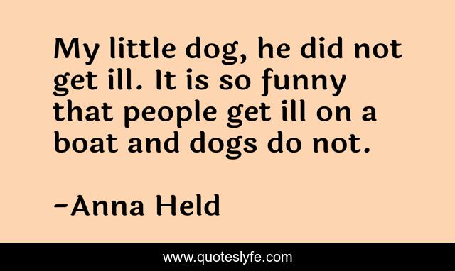 This page presents the quote "My little dog, he did not get ill. It is so funny that people get ill on a boat and dogs do not.". Author of this quote is Anna Held. This quote is about funny, comedy, dog, boat,.