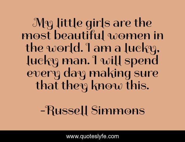 This page presents the quote "My little girls are the most beautiful women in the world. I am a lucky, lucky man. I will spend every day making sure that they know this.". Author of this quote is Russell Simmons. This quote is about beautiful, day, man,.