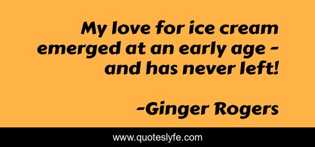 This page presents the quote "My love for ice cream emerged at an early age - and has never left!". Author of this quote is Ginger Rogers. This quote is about early, love, ice cream, affection,.