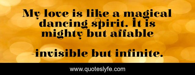 This page presents the quote "My love is like a magical dancing spirit. It is mighty but affable". Author of this quote is invisible but infinite.. .
