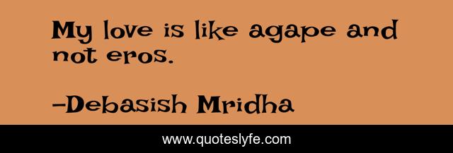 This page presents the quote "My love is like agape and not eros.". Author of this quote is Debasish Mridha. This quote is about agape, philosophy, debasish-mridha, erotic-love, quotes, debasish-mridha-md, inspirational, enthusiasm, christian-love,.