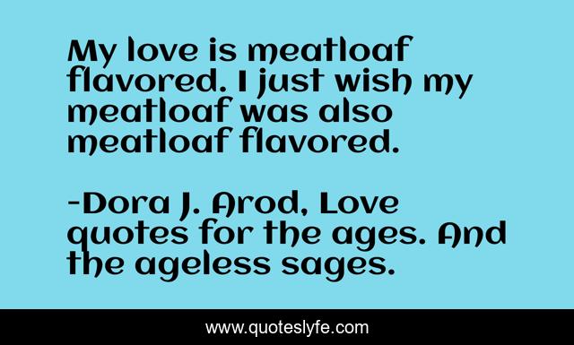 "Dora J. Arod, Love quotes for the ages. And the ageless sages. Quotes." Quoteslyfe.com, 2025. Sat. 06 Dec. 2025. <https://www.quoteslyfe.com/quote/My-love-is-meatloaf-flavored-I-just-1119>.